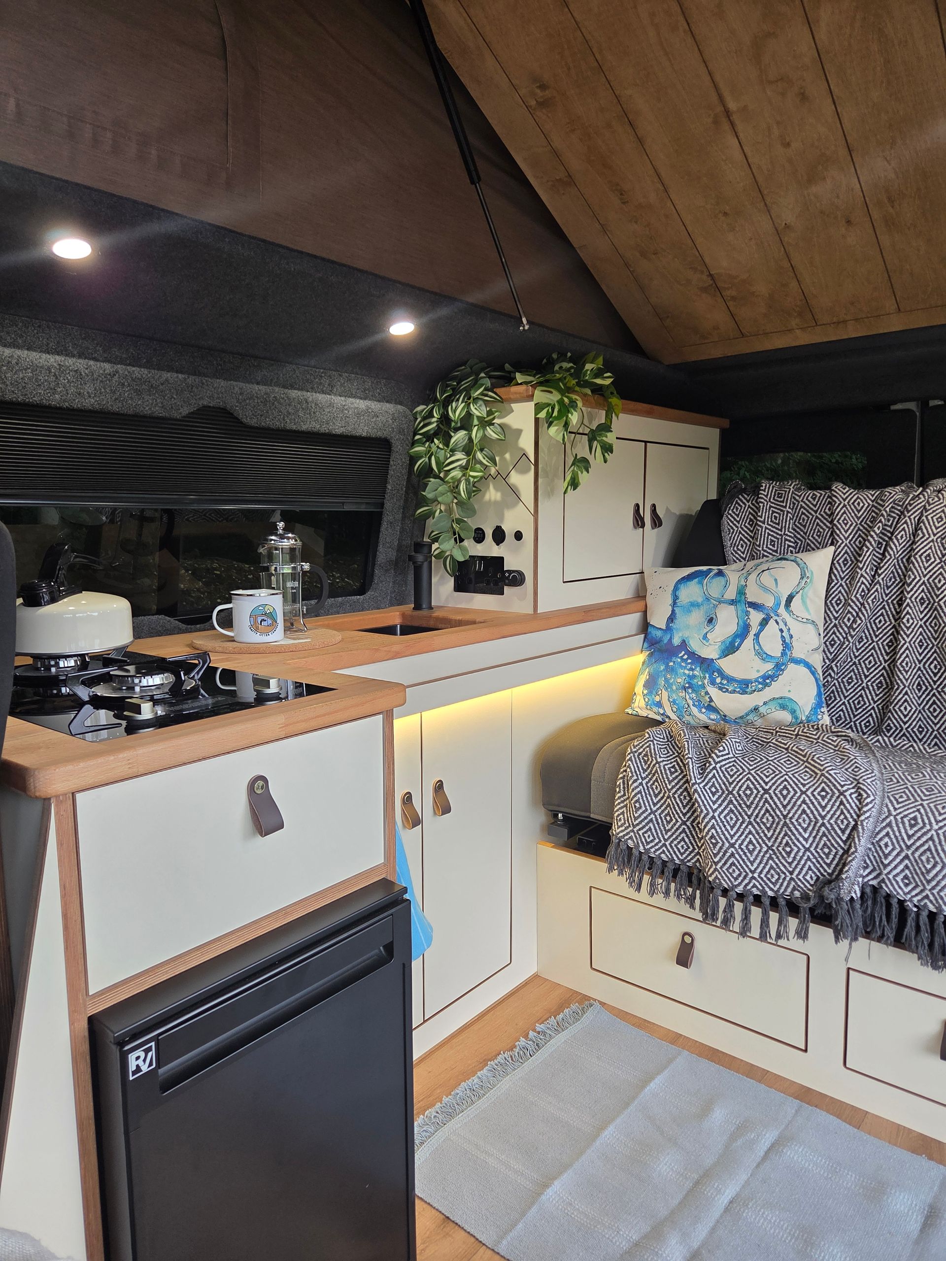 Whether you’re planning a weekend getaway in Devon or an extended UK road trip, Crafty Otter Campers specialises in high-quality, bespoke campervan conversions. We create beautiful, practical campervan conversions with luxurious touches, designed to meet your unique lifestyle and travel needs. Let us help you build the perfect campervan interior for exploring the open road in comfort and style.